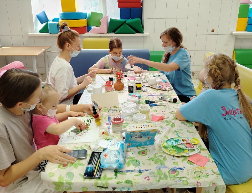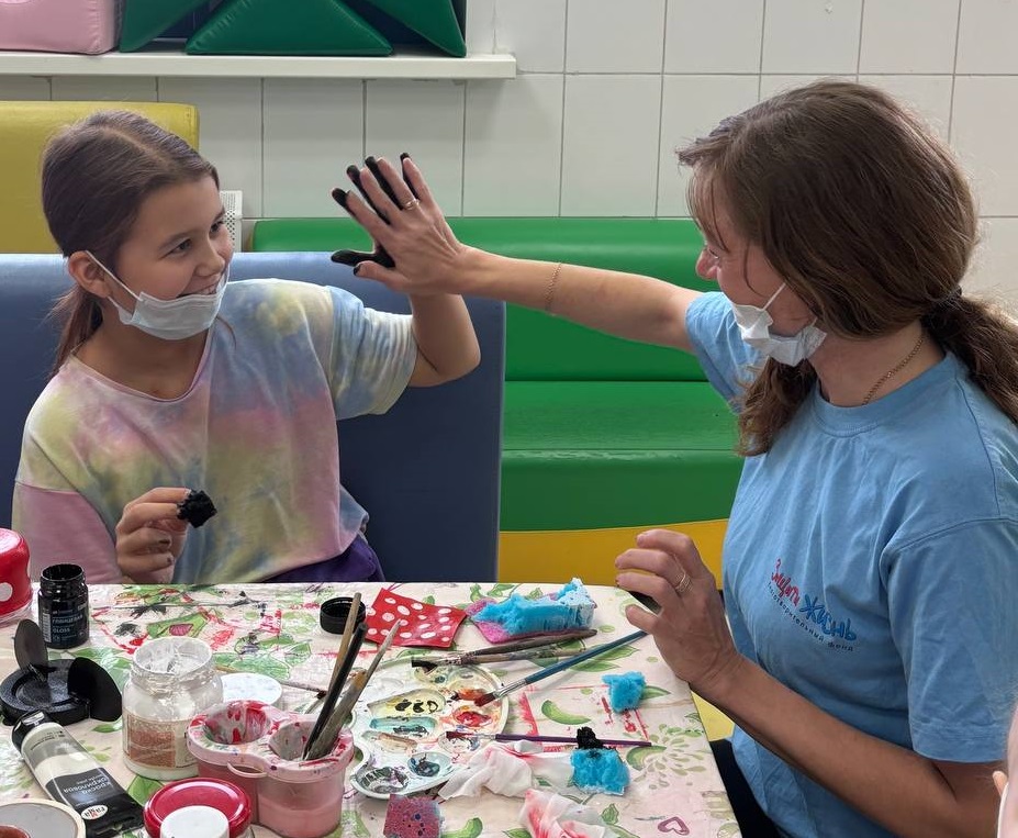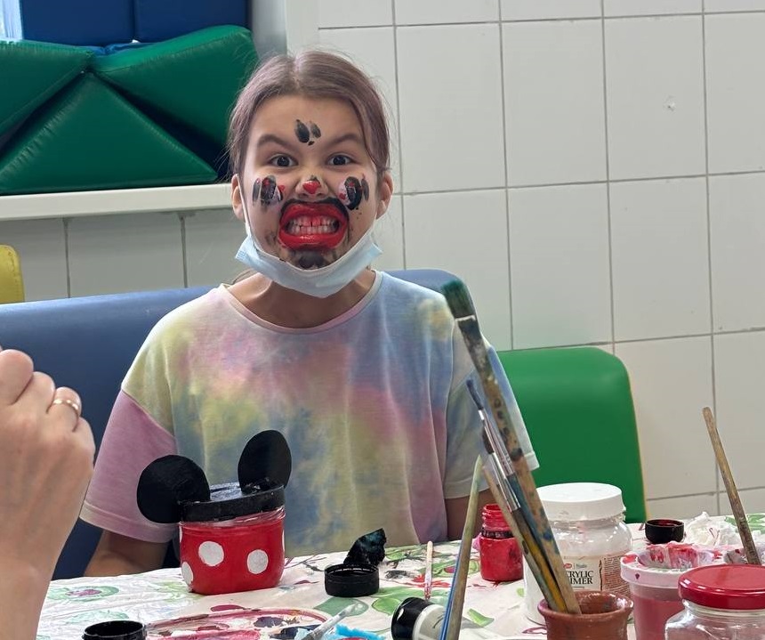 Вы только посмотрите, какие безобразия они учинили в отделении онкогематологии. Иляна и Ксения пришли в больницу с доброй миссией - провести мастер-класс по созданию копилок в виде Микки-Маусов. Начиналось все хорошо... Наши подопечные увлеченно клеили, рисовали, резали. Но когда поделки были уже готовы, яркая гуашь в баночках продолжала соблазнительно блестеть. Она-то и завела детей на скользкую дорожку.