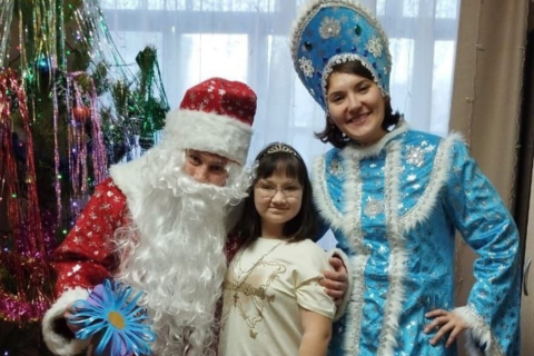 Новогодний экипаж уже в пути. Подопечные нашего фонда уже встречают бригаду по спасению новогоднего настроения — Деда Мороза и его внучку Снегурочку.