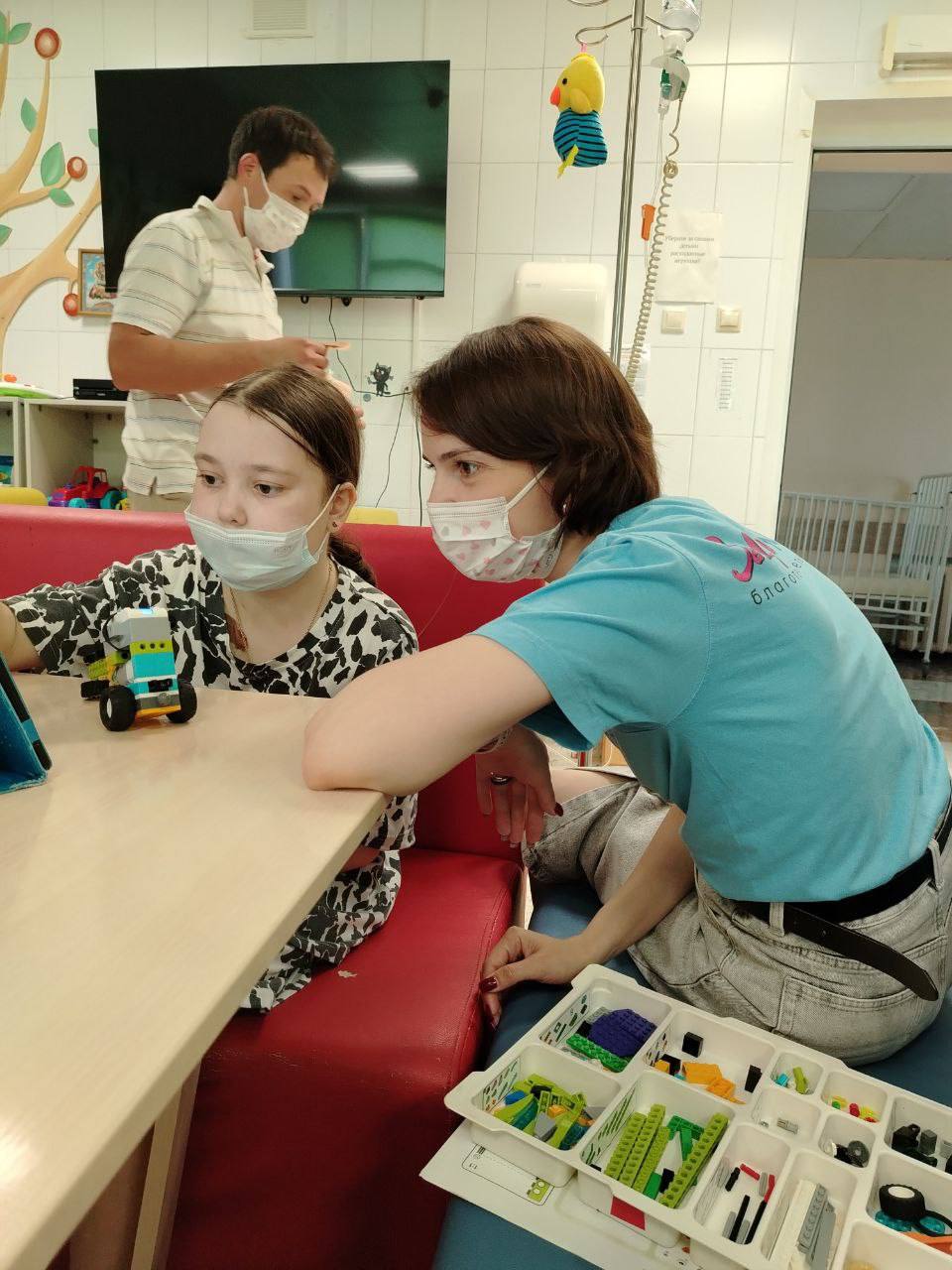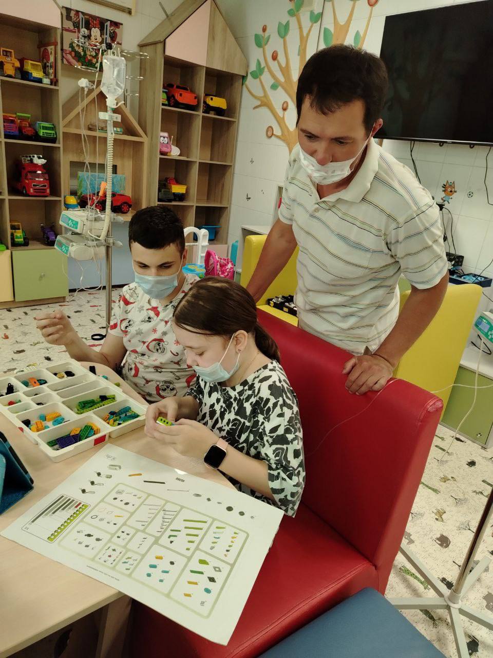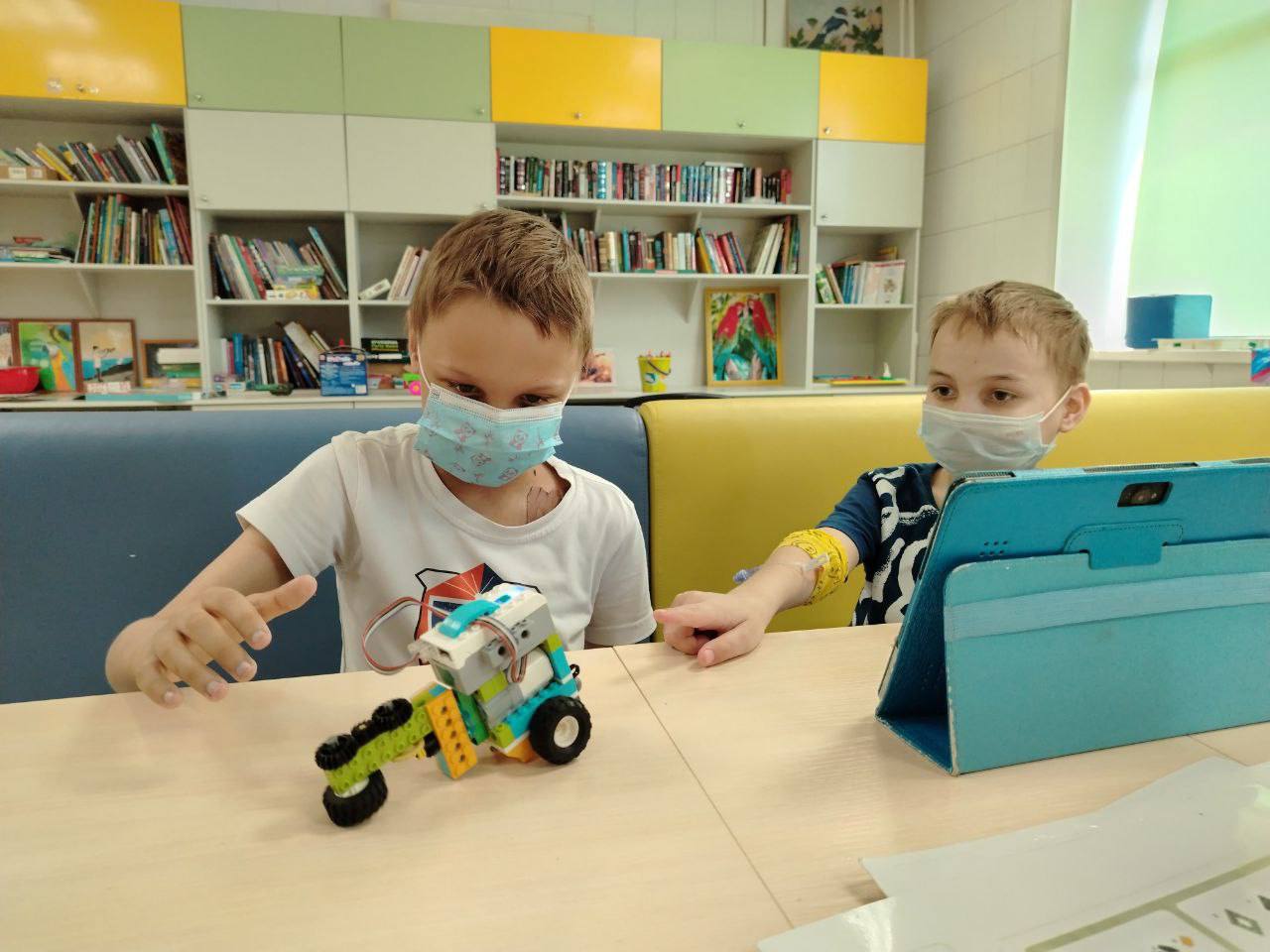 На мастер-классе ребята из отделения онкогематологии научились своими руками конструировать и программировать роботов, которые могут двигаться, издавать разные звуки и даже танцевать. Эмоциям ребят не было предела и это не удивительно, ведь даже взрослые были в восторге от происходящего. Завершили вечер мастер-класса настоящей гонкой роботов в игровой.